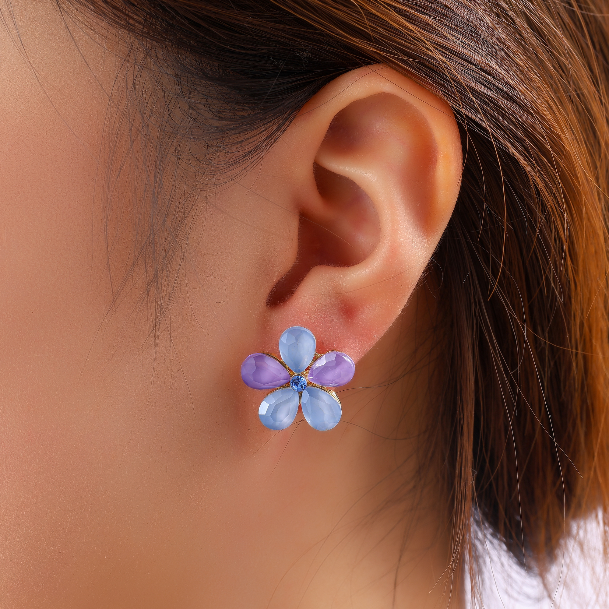 Day & Eve oorbellen E60006-4 Paars/Blauw/Goudkleurig