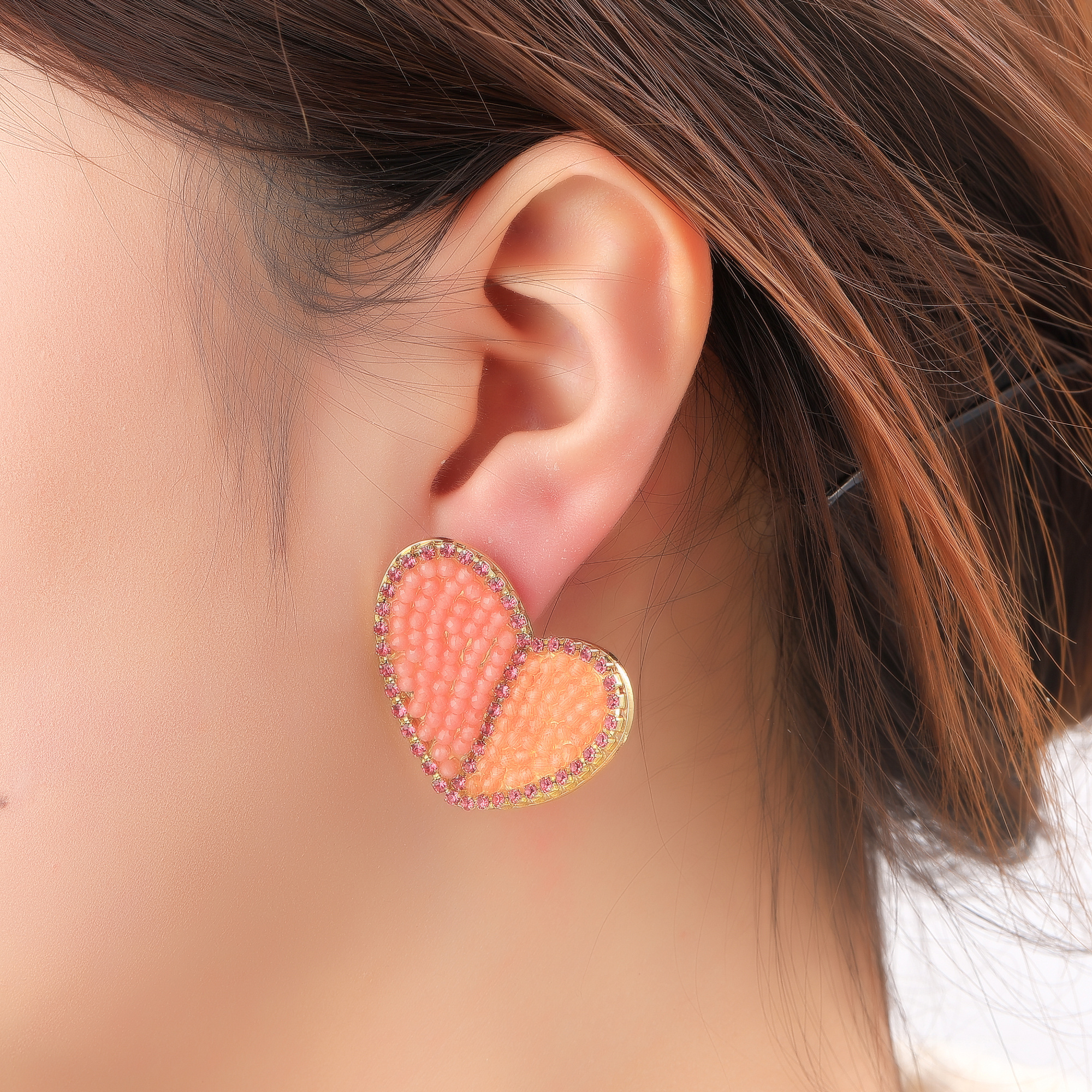 Day & Eve oorbellen E60115-3 Koraal/Goudkleurig