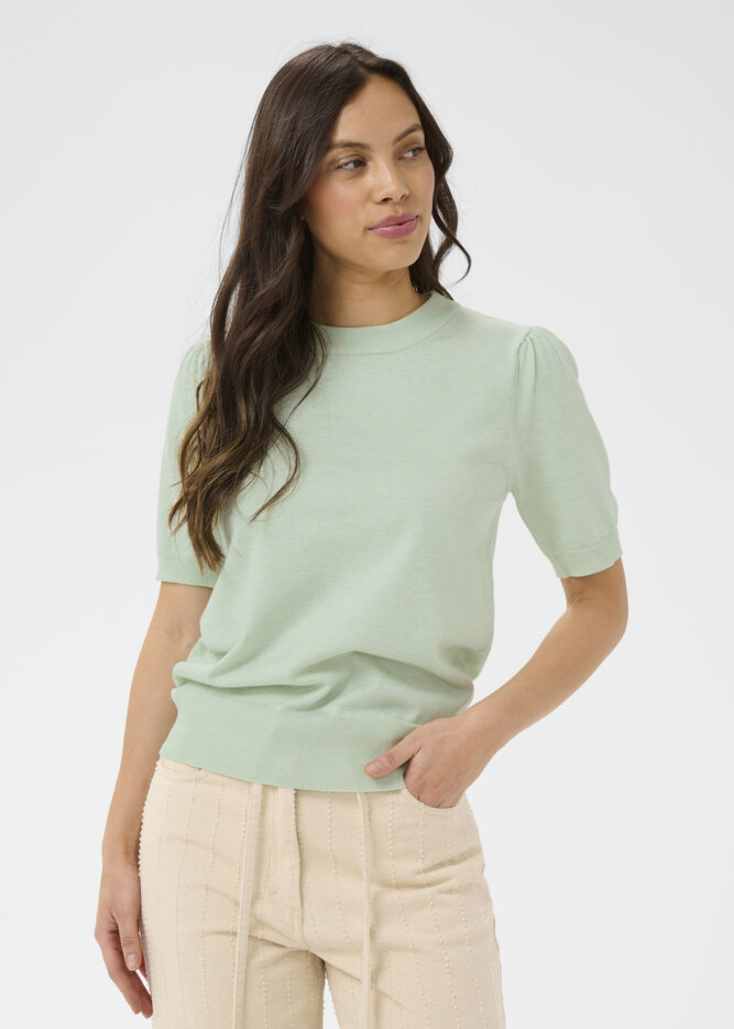 Top MilaSZ Korte Mouw Cameo Green Melange