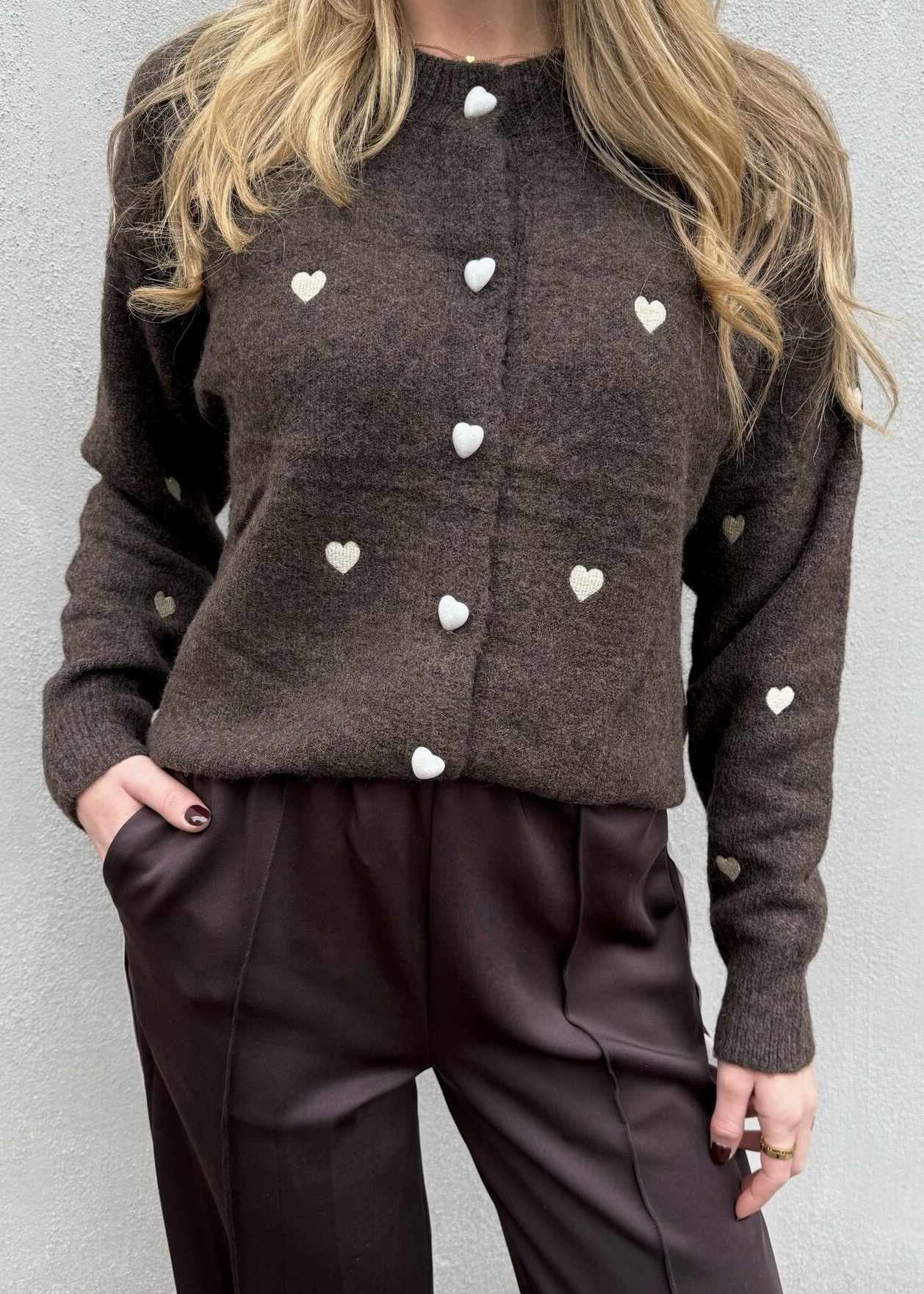 Aan verlanglijst toevoegenJewelz & MoreVest Mira Bruin/Creme Onesize €44,99 Incl. btw Levertijd 1 - 3 werkdagen StandaardMaak een keuze: *Standaard - €44,99Toevoegen aan winkelwagenInloggen voor wishlistDirect betalenGratis verzending Vanaf €75,-Vandaag verzonden? Je hebt nog 00 : 00 : 00BeschrijvingDelenBruin vest met crème kleurig geborduurde hartjes en bruine knoopjes. Facebook Whatsapp